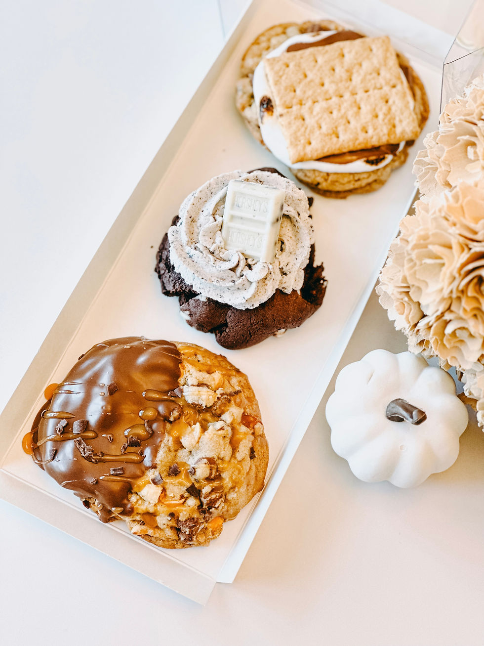 Exciting News! Introducing our JUMBO-sized cookies! Now, you can create your own personalized cookie box by mix and matching your favorite flavors to satisfy your cravings. Explore the delicious possibilities today!